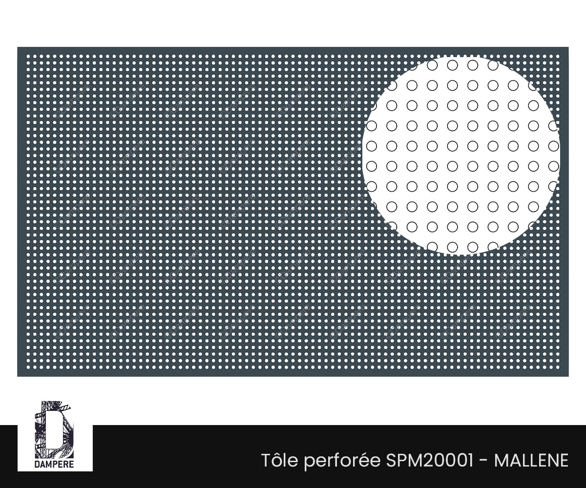 La tôle perforée ventilation Mallene DAMPERE permet de séparer tout en laissant passer l'air et le regard. A partir d'un motif simple à trou rond répétitif de diamètre 6 mm, le panneau garde une grande résistance mécanique malgré la perforation.