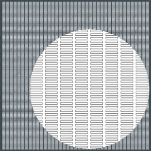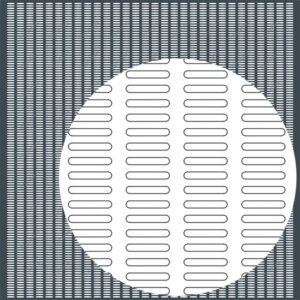 La texture fluide et tortillée de la tôle perforée décorative KANT lui confère un aspect tridimensionnel, renforçant l'effet de profondeur et de relief, et ajoutant une touche artistique et moderne à tout projet architectural. Ce design est idéal pour des applications variées, que ce soit en décoration intérieure ou pour des grilles de cache radiateur. La juxtaposition des formes géométriques, avec les croisillons rigides et la résille ondulante, crée un effet cinétique, où l'œil est attiré par les changements subtils de perspective et de lumière.