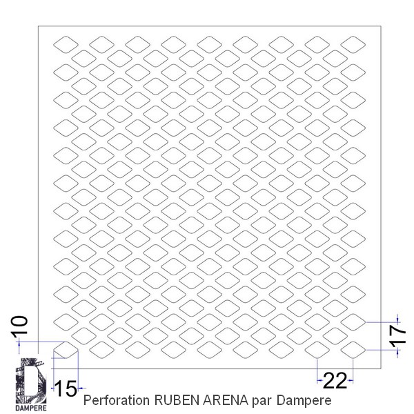 La grille perforée Ruben Arena DAMPERE, grâce à son motif fluide et simple, s'intègre parfaitement dans une multitude d'applications, particulièrement pour des projets de cache radiateur, décoration intérieure, et ventilation. Sa conception élégante en forme de noix d’amande légèrement ovalisée et son taux de perforation dépassant 50 % de vide en font une solution idéale pour des fonctions d'aération et de cloisonnement. Pour les caches radiateurs, la tôle perforée Ruben Arena permet une excellente circulation de l’air chaud tout en apportant une touche décorative raffinée. Les perforations en amande offrent une ventilation optimale, garantissant une dissipation efficace de la chaleur, tout en masquant discrètement le radiateur derrière un design moderne et léger pour cette maille métallique. Dans les applications décoratives, la grille ajourée Ruben Arena est utilisée comme séparateur d’espaces ou claustra métallique, apportant une touche d’élégance subtile à une pièce. Son motif ajouré crée un jeu de lumière et d’ombres intéressant, tout en maintenant une certaine transparence et légèreté visuelle. Elle peut être utilisée pour habiller des panneaux muraux, des portes de placard, ou encore pour décorer des meubles, renforçant l’esthétique contemporaine des espaces intérieurs. Pour des systèmes de ventilation, cette tôle perforée est idéale pour des grilles de ventilation ou des panneaux de soufflage, où un flux d’air important est nécessaire. Remplaçant souvent un métal déployé, la tôle perforée Ruben Arena assure une ventilation efficace tout en maintenant une apparence soignée et esthétique. Son ouverture généreuse permet une circulation d'air fluide, que ce soit pour des applications extérieures comme des grilles d’aération ou pour des espaces techniques nécessitant un passage d’air constant.