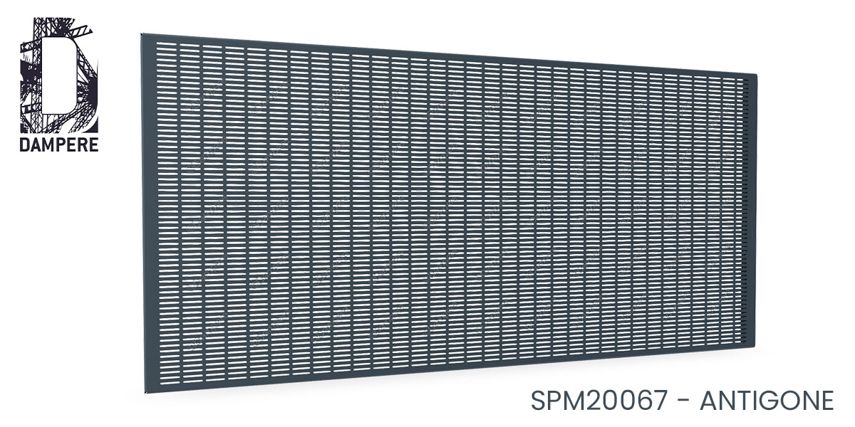 La tôle perforée Antigone DAMPERE, avec ses trous oblongs alignés de manière horizontale, trouve un usage idéal dans des projets de design minimaliste où la fonctionnalité et l'esthétique se combinent harmonieusement. Pour des garde-corps balcon de barres HLM, cette tôle perforée offre une solution à la fois pratique et visuellement discrète, tout en apportant une touche moderne grâce à son jeu de perspectives horizontales.