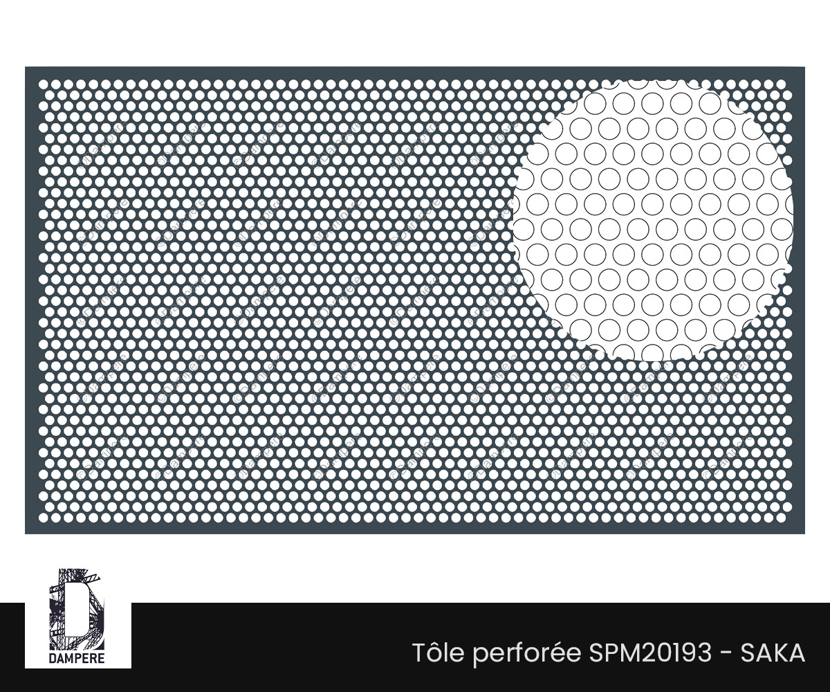 Tôle perforée R12T16 - SAKA à trou rond de 12 mm disposition en quinconce pour former une grille perforée Rv12-16 à transparence 51% de vide