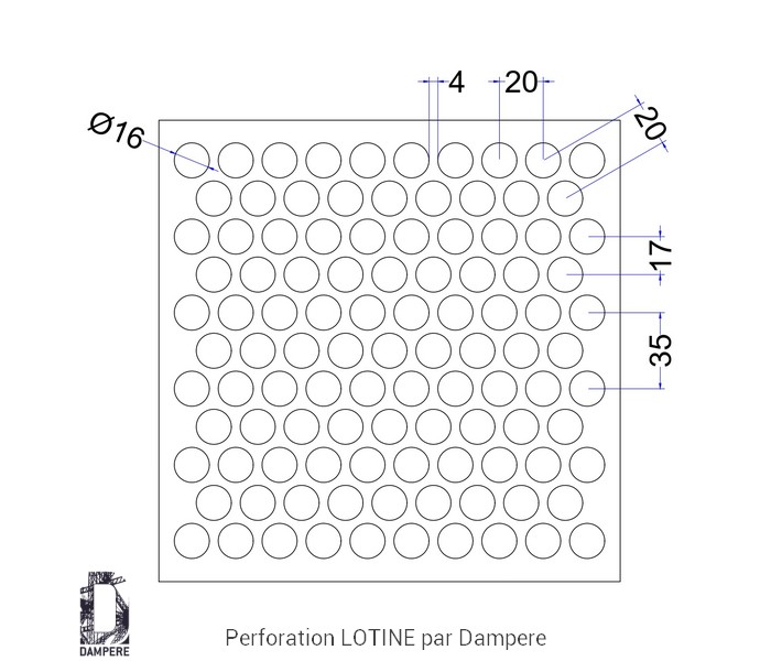 La tôle perforée R16T20 – Lotine incarne un motif à trous ronds régulier de 16 mm, disposés avec précision selon une trame en quinconce à 60°, avec un entraxe précis de 20 mm de centre à centre. Ce schéma géométrique régulier constitue le motif Rv16-20, offrant une transparence de 58 %, soit l’un des taux d’ouverture les plus élevés du catalogue des tôles perforées standards. Grâce à ses grands trous ronds, la tôle perforée R16T20 Lotine combine effet de légèreté visuelle, fort passage d’air et de lumière, et une grande présence décorative, tout en conservant une structure mécanique équilibrée pour des usages nécessitant une protection techniques. La disposition en quinconce à 60°, par opposition à une grille en ligne droite, permet une diffusion plus fluide des charges mécaniques, notamment sur des panneaux de grandes tailles, tout en générant une trame visuelle plus dynamique et esthétique. Ce motif évite l’effet de « bande » verticale, souvent perçu comme trop rigide en décoration, pour offrir une perception de moucharabieh fluide et homogène. L’effet visuel de la tôle perforée R16T20 est saisissant : - Lors d’une observation de près, les grands cercles réguliers créent une texture marquée et contemporaine, jouant avec la lumière, les reflets et les ombres. - De loin, la perfo R16T20 devient un voile métallique semi-opaque, parfait pour des projets nécessitant transparence, filtre visuel dynamique selon l’angle de vue. Avec ses atouts, la tôle perforée R16T20 – Lotine s’applique facilement sur : - Façades ajourées cherchant un effet de moucharabieh géométrique, un effet graphique notable, apportant lumière naturelle, esthétique et ombrage passif. - Clôtures urbaines ou périmétriques, pour délimiter sans enfermer en ville. - Caches techniques ou grilles de ventilation, où la circulation d’air est essentielle. - Garde-corps fonctionnels, en résidentiel ou tertiaire (avec précautions sur la rigidité). Recommandation technique : du fait de son fort taux d’ouverture (58 %), la tôle perforée R16T20 Lotine possède moins de matière résiduelle, ce qui peut réduire sa résistance aux chocs ou à la flexion sur de grandes portées. Il est recommandé de l’utiliser dans un cadre rigide ou de prévoir un système de pliage latéral sur les 4 côtés de la tôles pour renforcer sa tenue structurelle. Prix indicatif de la tôle perforée R16T20 se situe entre 45 €/m² et 65 €/m² pour des quantités de 100 m² (hors finition) en Acier galvanisé, ép1,5 mm en dimensions standard de plaques 1000 x 2000 mm. Le motif perforé Rv16-20 – Lotine représente une bonne option pour les projets visuellement expressifs, qui exigent un haut degré de ventilation ou de légèreté esthétique, tout en acceptant un niveau de rigidité modéré. Pour les projets nécessitant plus de robustesse à prix réduit, une alternative comme la tôle R15T20 peut être envisagée, avec un équilibre entre ouverture et une tenue mécanique mieux répartie.