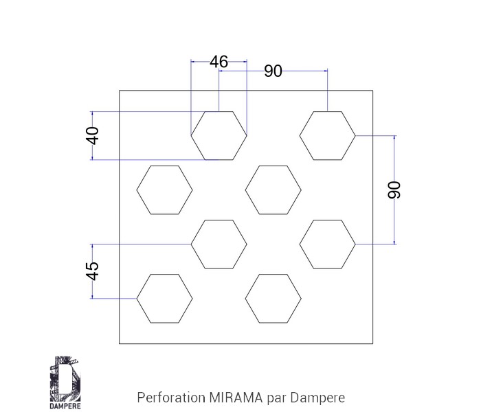 La tôle perforée H40M90 – Mirama associe force structurelle, design graphique et effet d’occultation marqué. Son motif en moucharabieh de 40 mm, disposé en quinconce, forme une trame architecturale puissante et régulière offrant une transparence d’environ 15 % de vide. Par sa géométrie à six côtés et son ouverture contenue, la Mirama allie performance mécanique et protection visuelle. Elle s’impose comme un matériau expressif, idéal pour les projets nécessitant une présence forte du métal, une occultation partielle et une texture à la fois technique et décorative. Le conseil de l'équipe